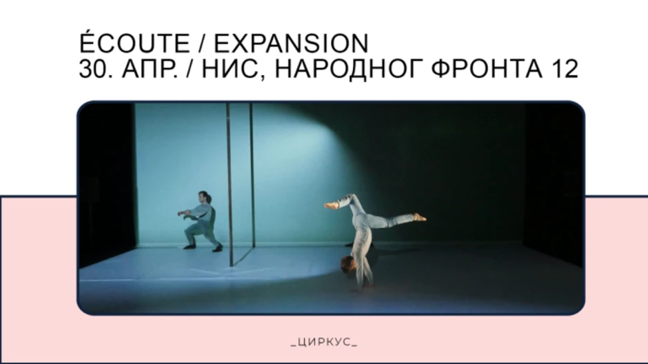 Nesvakidašnji cirkuski performans "Écoute / Expansion", autorke i koreografkinje Kicu Diboa, biće izveden sutra 30. aprila u velikoj pozorišnoj sali poslovnog centra NIS u Novom Sadu, u dva termina: od 17.30 do 19 časova i od 20.30 do 22 časa.