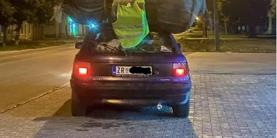 Naime, automobil je fotografisan na ulicama Zrenjanina u kasnim večernjim satima, a ono što nije dozvoljavalo da prođe neopaženo je "prtljag" koji je bio pričvršćen na njegovom krovu.