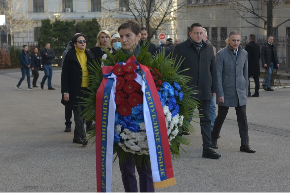Sa predsednicom Vlade, venac su postavili ministri Siniša Mali, Vanja Udovičić, Darija Kisić Tepavčević, Nebojša Stefanović, Marija Obradović, Maja Popović, Gordana Čomić, Jadranka Joksimović, Nenad Popović, Ratko Dmitrović i Branko Ružić.