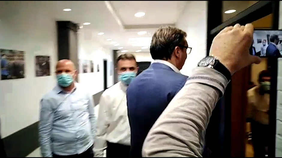 U štabu Srpske napredne stranke svi uveliko očekuju prve izborne rezultate, a monotoniju je u jednom trenutku prekinuo Aleksandar Vučić, koji je ušao u kancelariju i našalio se sa kolegama iz stranke uz reči: Al' ste se odomaćili...