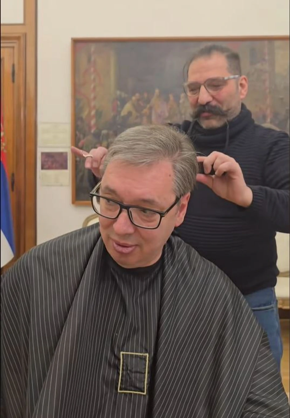 Predsednik Srbije Aleksandar Vučić podelio je na svom TikTok profilu video na kome se vidi kako ga frizer šiša, rekavši da se sprema za gostovanje na jednoj televiziji.