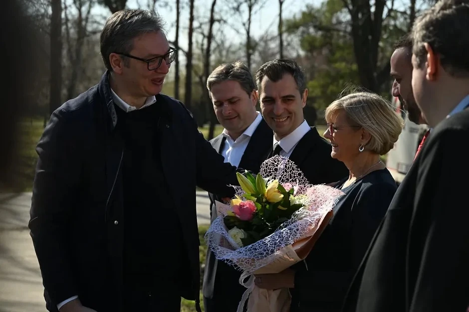 Predsednik Srbije posetio je Inkluzivno - edukativni centar u Alibunaru, gde su ga dočekali predsednica opštine Alibunar Zorana Bratić i predstavnici tog centra.