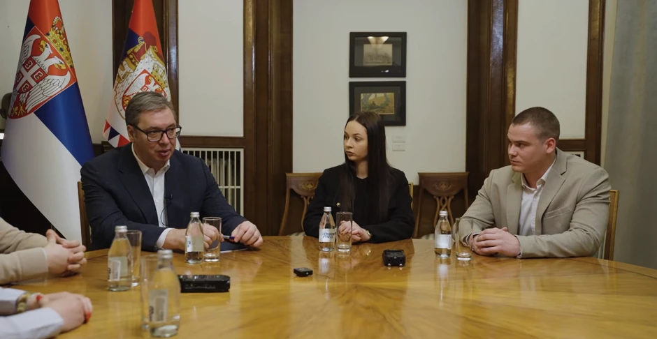 Predsednik Srbije, Aleksandar Vučić, podelio je na svom Fejsbuk nalogu snimak studenata koji su ga posetili na radnom mestu.