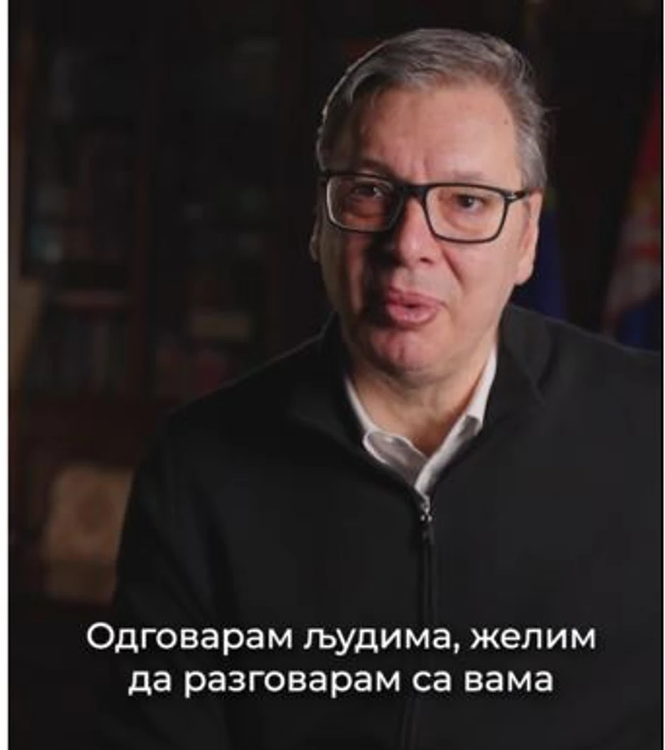 - Odgovaram ljudima, želim da razgovaram sa vama, i hoću da čujem vaše mišljenje, vaše stavove - poručuje predsednik na početku snimka.