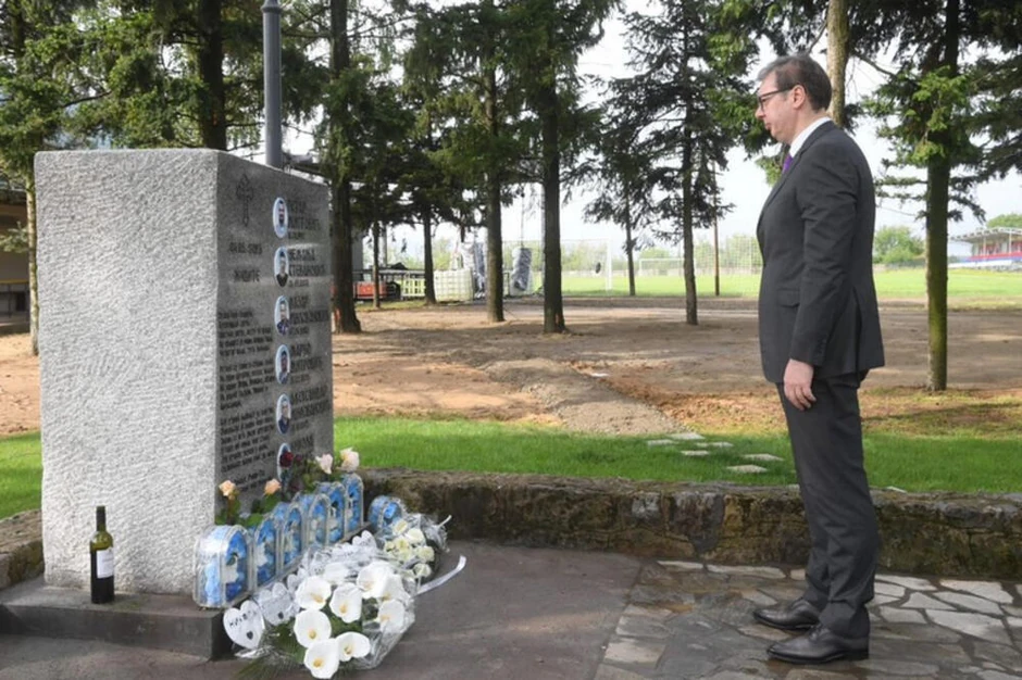 Predsednik Republike Srbije Aleksandar Vučić položio je cveće u spomen-parku u Malom Orašju na mestu ubistva Nemanje Stevanovića, Lazara Milovanovića, Marka Mitrovića, Aleksandra Milovanovića, Nikole Milića i Petra Mitrovića.