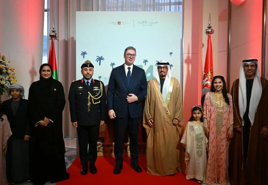 Predsednik Republike Srbije Aleksandar Vučić prisustvovao je danas prijemu povodom obeležavanja Nacionalnog dana Ujedinjenih Arapskih Emirata (UAE) i istakao da Srbija i UAE dele iskreno i trajno prijateljstvo, zasnovano na uzajamnom poverenju, poštovanju i viziji uspešne i prosperitetne budućnosti naših naroda.