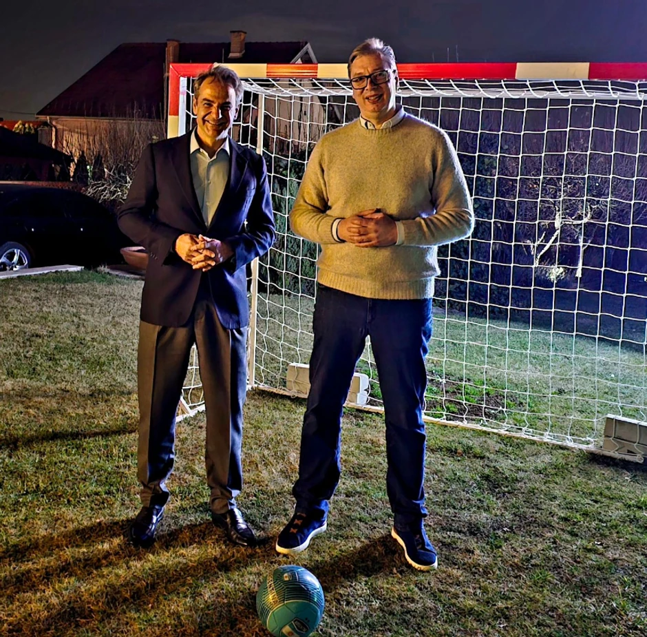 - Kirjakos i ja smo se slikali sa loptom. Srećan što mogu da ugostim velikog prijatelja Srbije, ponosan i na naš lični odnos, verujem da ćemo večeras i sutra postići velike rezultate u unapređenju saradnje bratskih naroda, srpskog i grčkog - dodaje se.
