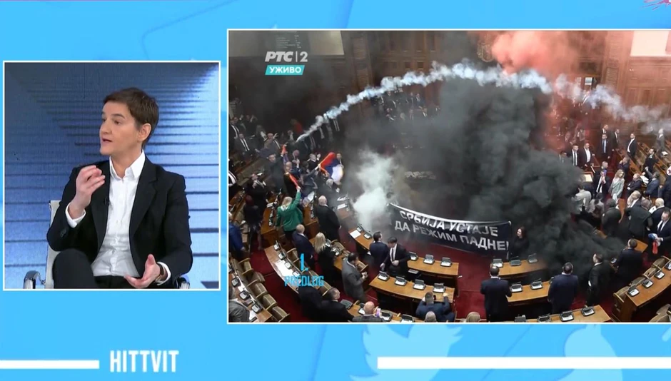 "Sonja je dobro, Gavrilo je dobro i on će ostati simbol pobede. Jasmina Obradović je stabilno, najviše je pretrpela, zbog moždanog udara... Ima veoma mnogo narodnih poslanika koji su prijavili neke smetnje sa disanjem. Najvažnije je da smo sačuvali institucije i da ne mogu da nas uplaše. Nikada nećemo ustuknuti. Sada im je ta poruka jasna. Ovo je teroristički akt, videli smo kako reaguju zemlje sveta", rekla je Brnabić.