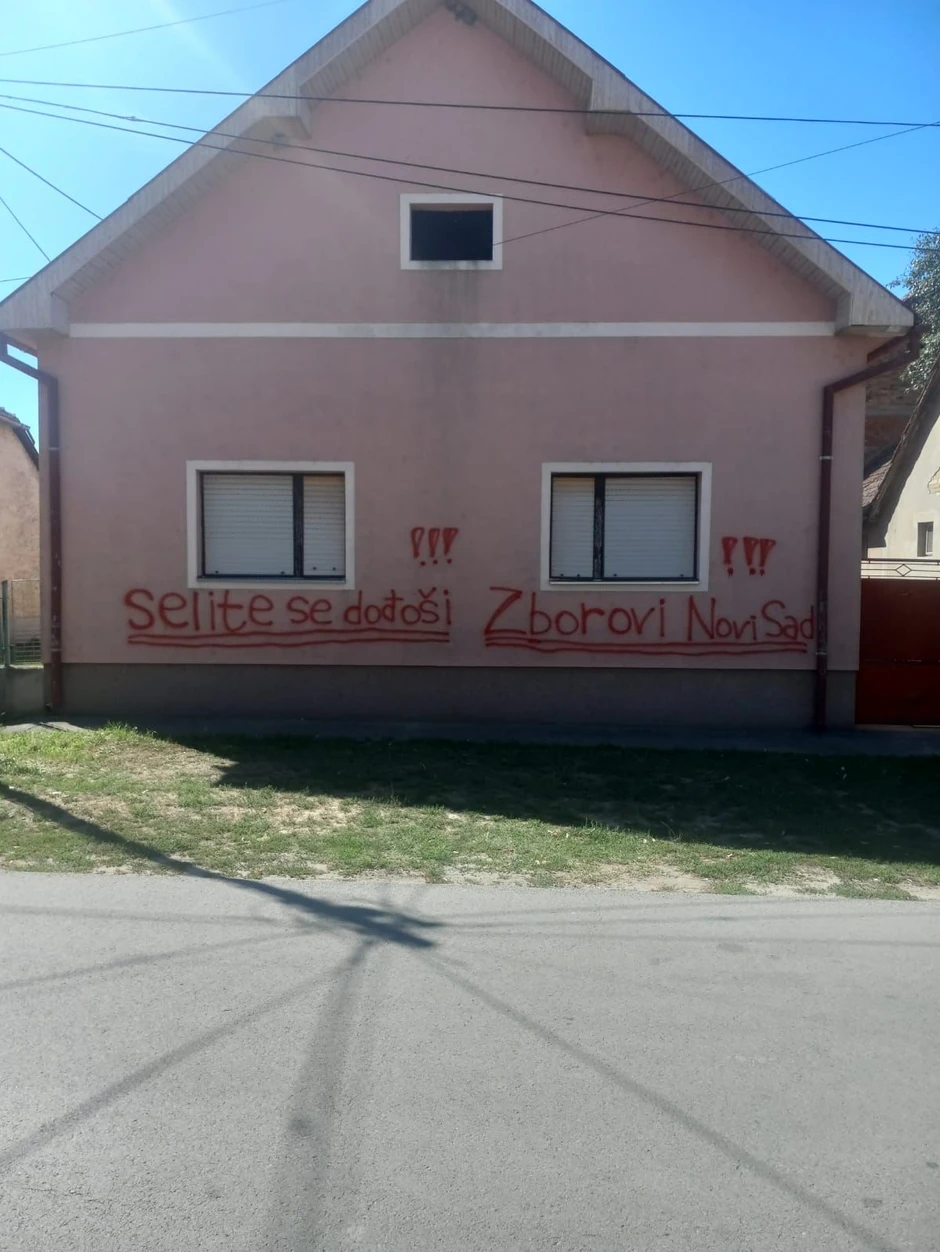 Na fotografiji koju je postavila vidi se da je kuća išarana porukom "selite se dođoši". Brnabić je objasnila i da su porodici Balać kuće u Grahovu spaljene 1995. godine, i da su "doživeli da ih danas neki blokaderi teraju iz Novog Sada, iz Srbije".