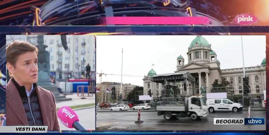 - Za početak programa, početak skupa "Ne damo Srbiju" sutra, imaćemo program samo na ovoj centralnoj bini ispred Narodne Skupštine, tako da ja želim da pozovem sve građane Srbije, sve ove ljude koji žele mirnu, stabilnu, uspešnu, pobedničku Srbiju, koja se vraća sebi, koja se vraća dialogu, koja se vraća razumevanju i radu, koja je protiv bilo kakvih podela, da se okupimo sutra od 17.00 svi zajedno ovde i da počnemo jednu manifestaciju koja će zaista označavati kraj teroru koji smo svi trpeli u poslednjih, pa sada već praktično, pet meseci - rekla je Brnabić za TV Pink.