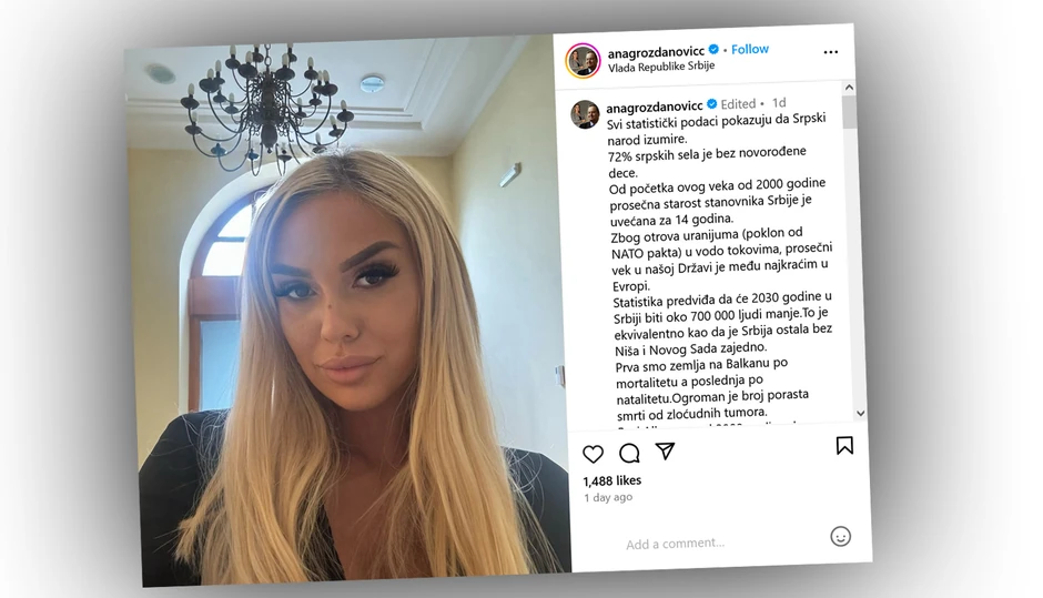 Ovaj, za većinu ljudi upitan predlog, podelila je na svom Instagram nalogu, a poslužili se dostupnom "statistikom o nestajanju srpskog naroda".