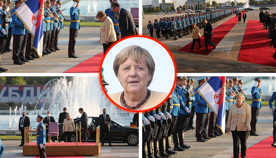 Nemačka kancelarka Angela Merkel stigla je ispred Palate "Srbija", gde je za nju upriličen svečani doček.
