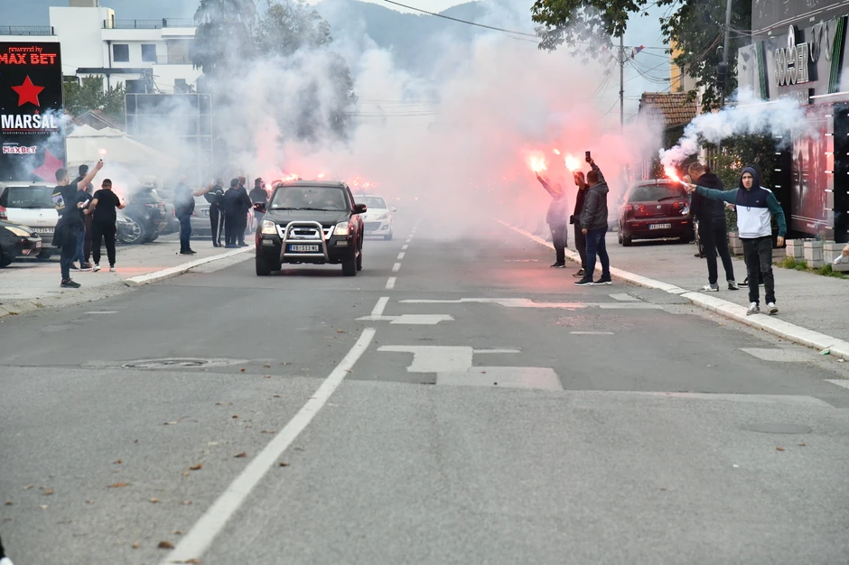 Stotine ljudi se okupilo na jednoj pumpi u Vrnjačkoj Banji čekajući da se dopremi telo Stefana Nedeljkovića, Srbina ubijenog u sukobu u Banjskoj 24. septembra. Navijači "Crvene zvezde" su pripremili bakljadu, dok veliki broj ljudi čeka da Nedeljkovića isprati na večni počinak.