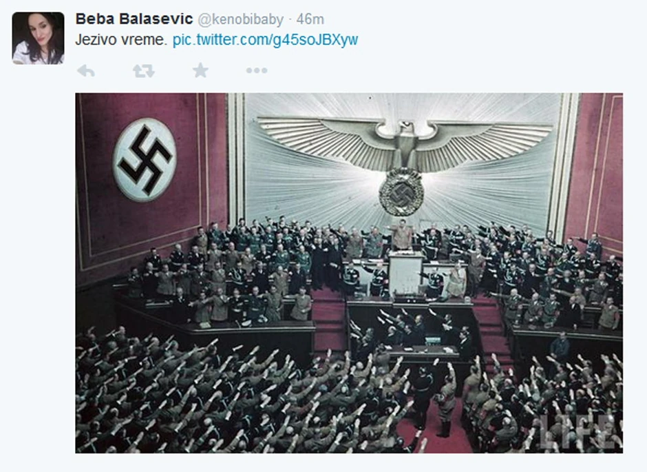 Naime, mlađa ćerka kantautora Đorđa Balaševića, uz sliku Adolfa Hitlera i nacista napisala je samo kratko "Jezivo vreme", međutim "problemi" su nastali kada je "demokrata" Goran Ješić upitao "Bečić onaj levo?".