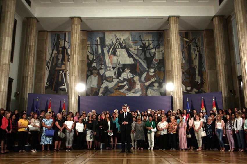 - Hoću da vam se zahvalim što ste danas ovde u zgradi Predsedništva. Ovde su žene rudari ili rudarke, kako se već kaže, to su naše junakinje, heroine, žene koje se svakoga dana bore za hleb cele Srbije - rekao je Vučić.
