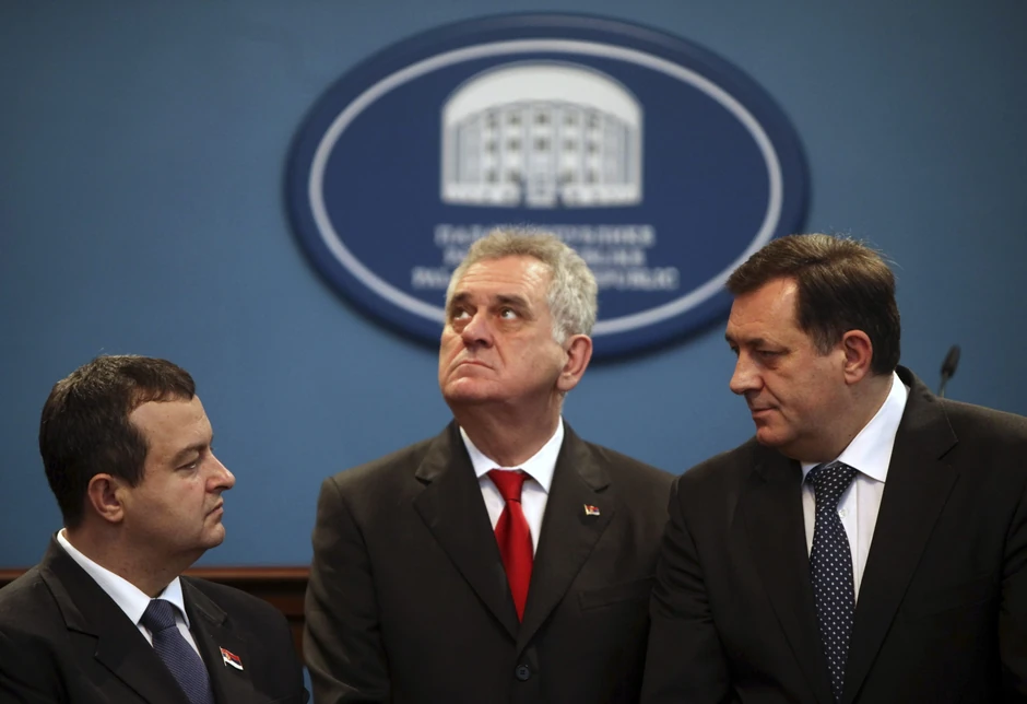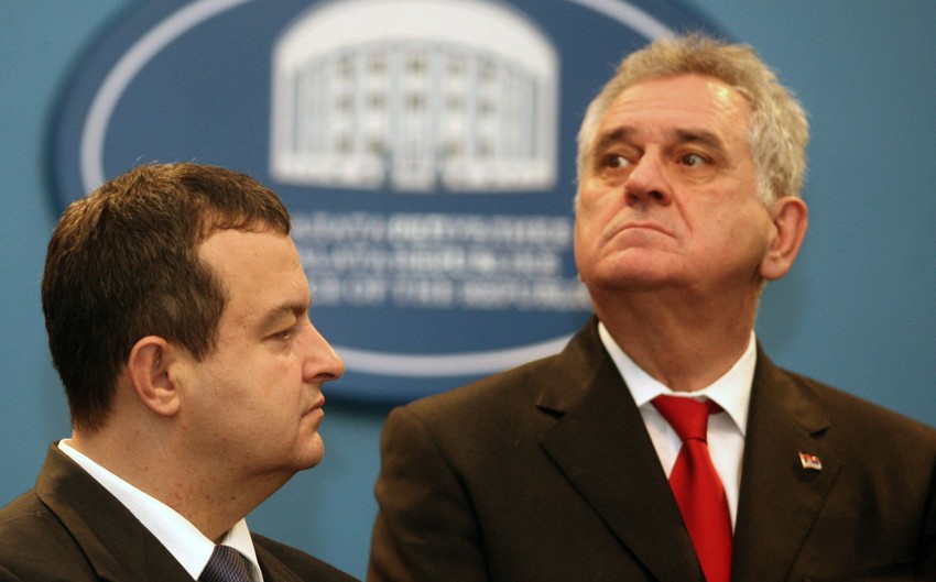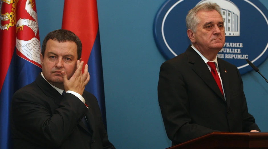 Razmimoilaženja predsednika Tomislava Nikolića i premijera Ivice Dačića oko platforme za rešenje kosovskog pitanja najočiglednija su na nekoliko fotografija nastalih tokom posete državnog vrha Bosni i Hercegovini. Na konferenciji za novinare u Banja Luci gledali su u plafon, u pod, u Dodika, samo ne jedan u drugog.