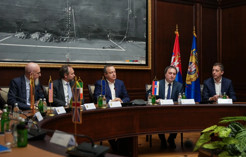 Potpredsednik Vlade i ministar unutrašnjih poslova Ivica Dačić, ministar spoljnih poslova Marko Đurić i ministar pravde Nenad Vujić, održali su danas sastanak sa predstavnicima zemalja Кvinte i delegacije EU, kako bi ih informisali o ozbiljnosti situacije u vezi sa protivpravnom blokadom Radio Televizije Srbije (RTS) i posledicama koje ovaj napad ima po demokratske institucije, bezbednost medijskih radnika i vladavinu prava u našoj zemlji.