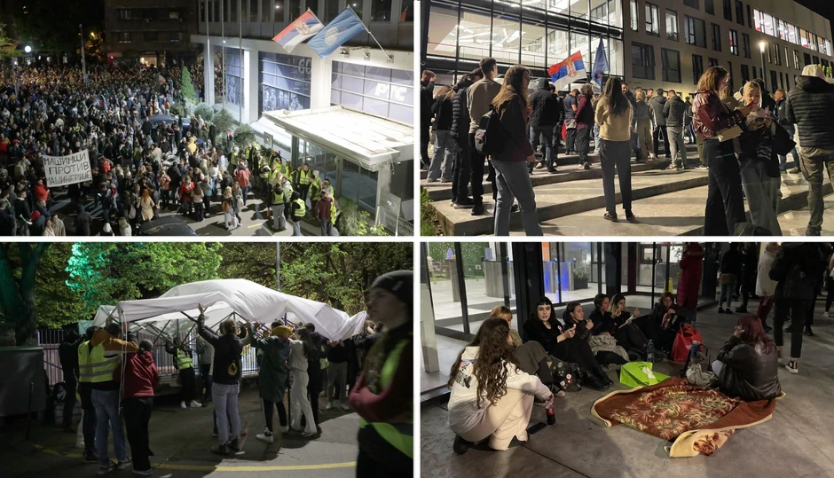 Postavljaju se šatori iza Takovske. Studenti koji su u ponedljek uveče organizovali blokadu ispred zgrade Radio- televizije Srbije u jednom uglu platoa skupili su ćebad i stolice, a na pitanje do kada ostaju, kratko odgovaraju - "do daljeg".