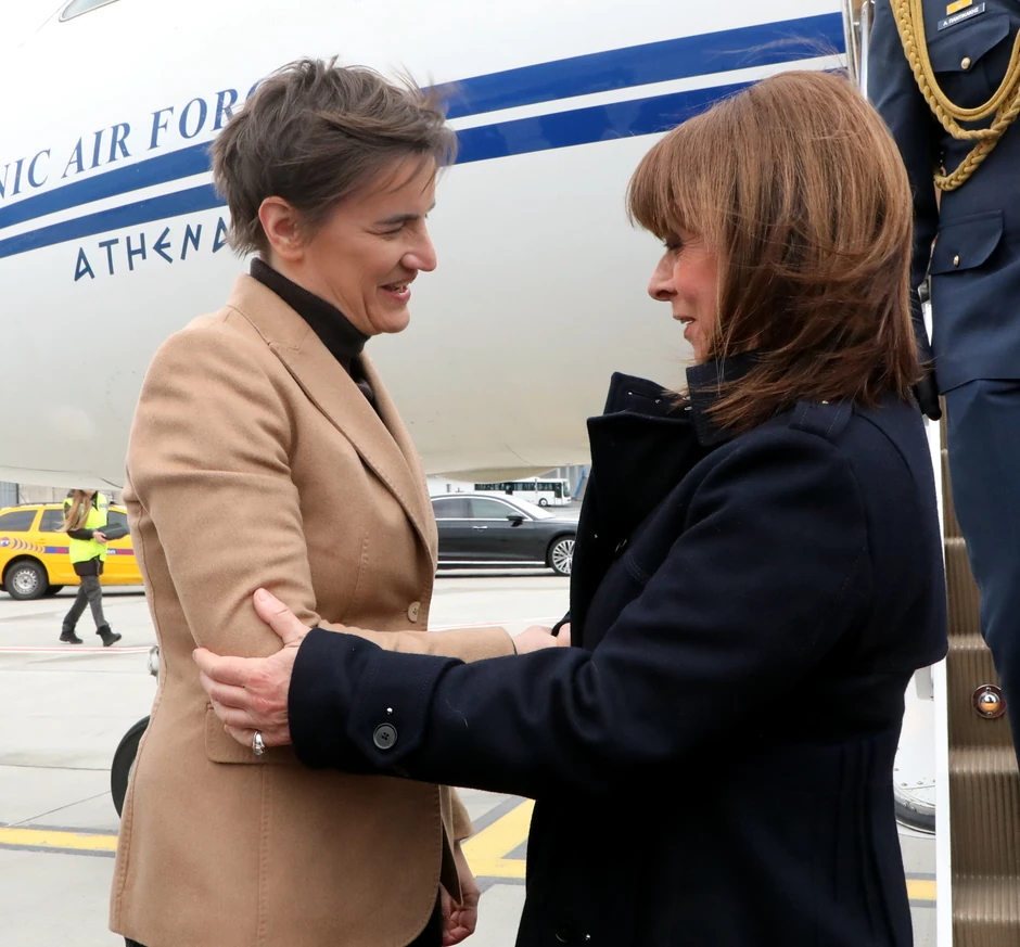 Premijerka Srbije Ana Brnabić dočekala je danas na aerodromu Nikola Tesla predsednicu Grčke Katerinu Sakelaropulu, koja je u zvaničnoj poseti Srbiji do 29. marta.