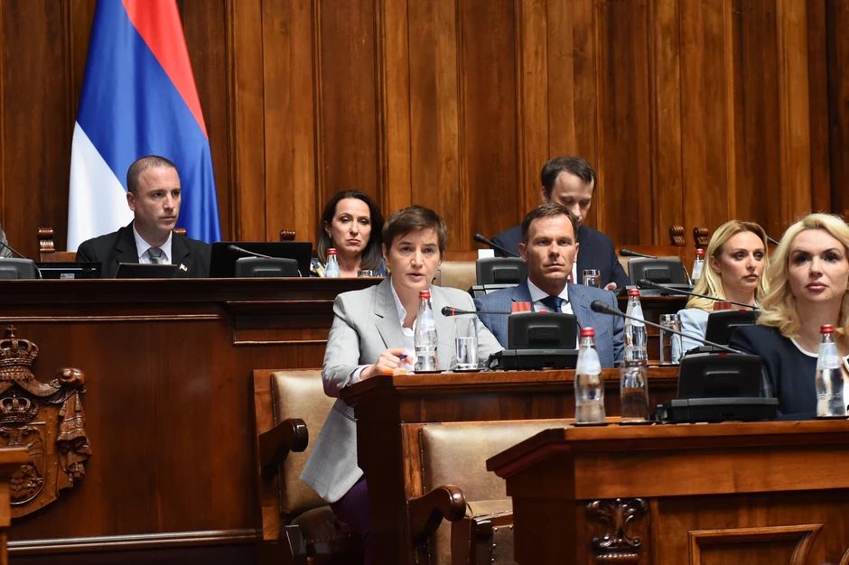 U parlamentu su i ministri finansija Siniša Mali, za rad, zapošljavanje, boračka i socijalna pitanja Nikola Selaković, za brigu o porodici Darija Kisić, za poljoprivredu Jelena Tanasković. Na dnevnom redu je i predlog o izboru Slavice Đukić Dejanović za ministarku prosvete.