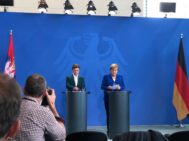 Merkel je rekla na konferenciji za medije da je sa Brnabić razgovarala i o situaciji u regionu i saradnji i istakla da je raduje što se Berlinski proces pokazao kao veoma koristan i doveo do velikih mogućnosti i aktivnosti saradnje.
