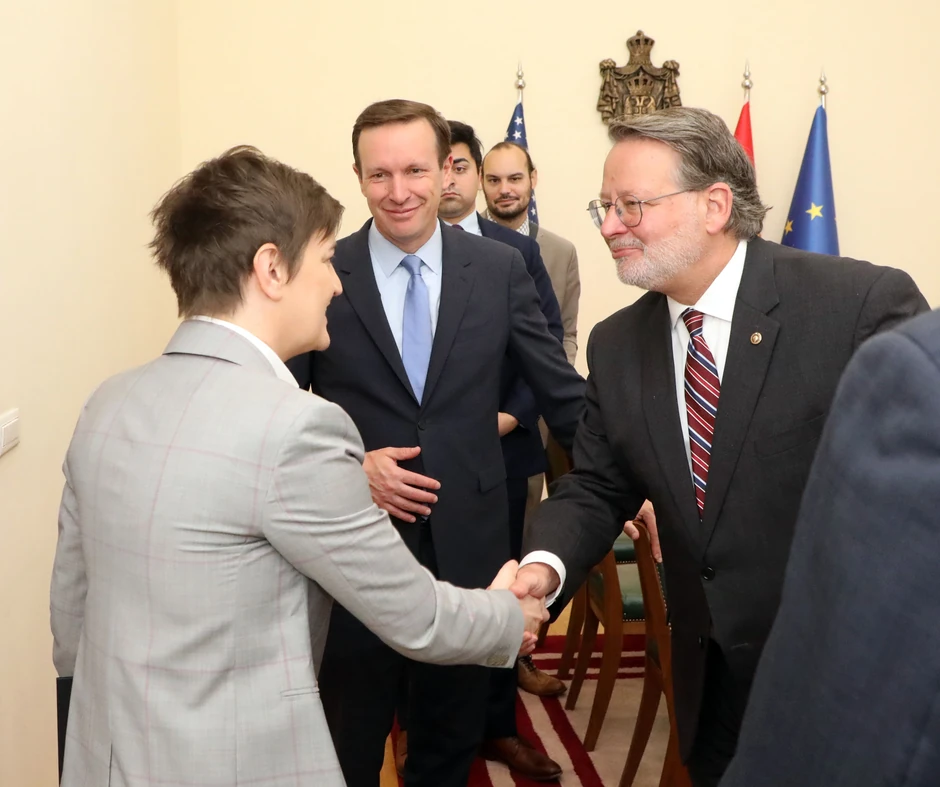 Na sastanku u Vladi Srbije bili su senatori Kristofer Marfi, Geri Piters i ambasador SAD u Srbiji Kristofer Hil.