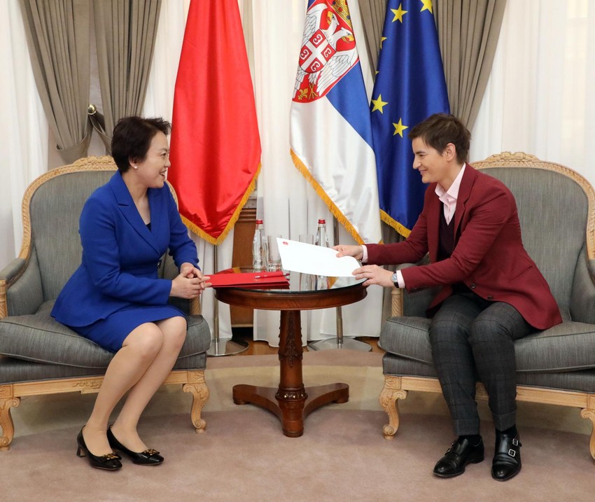 Predsednica Vlade Ana Brnabić sastala se danas sa ambasadorkom Kine u Srbiji Čen Bo, koja joj je uručila čestitku premijera Državnog saveta Narodne Republike Kine Li Kećianga povodom njenog reizbora i izbora nove vlade.