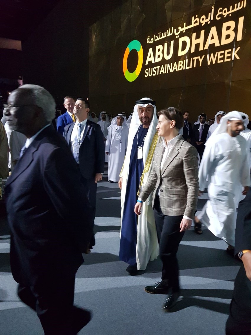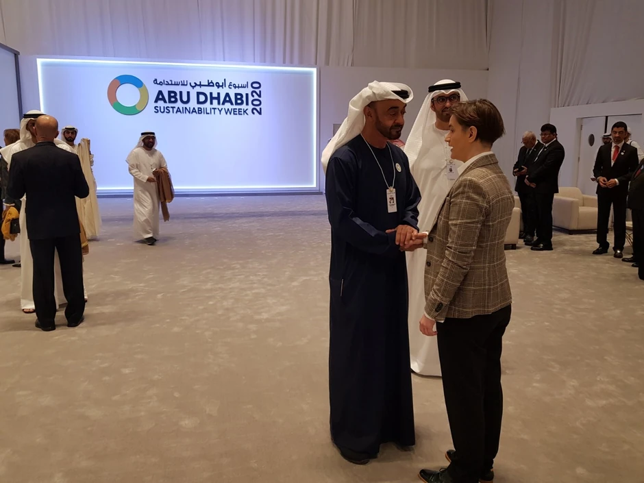 Premijerka Srbije Ana Brnabić razgovarala je danas u Abu Dabiju sa princem prestolonaslednikom šeikom Muhamedom bin Zajedom Al Nahjanom, uoči početka obeležavanja Nedelje održivog razvoja (Abu Dhabi Sustainability Week - ADSW) - globalne platformu za ubrzanje održivog razvoja u svetu.