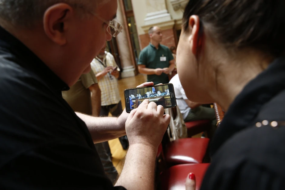 Nenad Čanak danas je u holu Skupštine Srbije pokazivao novinarima fotografije koje je napravio juče, tokom čitanja ekspozea mandatara Aleksandra Vučića.