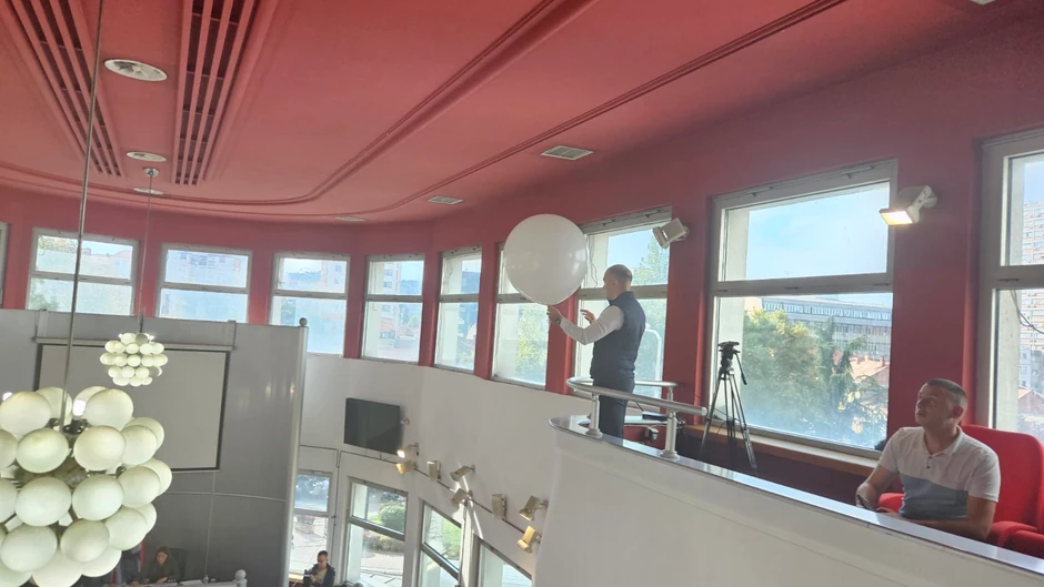 U međuvremenu su aktivisti pokreta "Kreni - promeni" ušli u salu sa balonom.