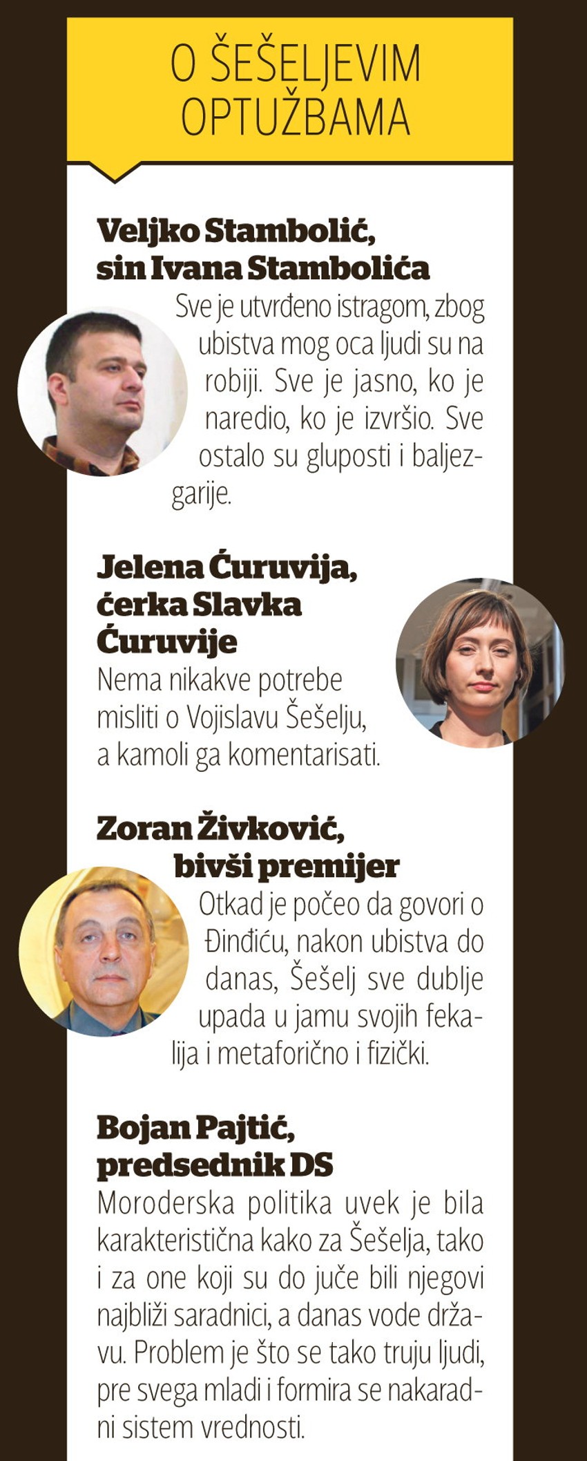 Teško je oceniti da li je bilo ružnije ili tužnije slušati Šešelja kako iznosi svoje viđenje o zakopanim telima Albanaca u Batajnici ili kada govori o atentatu na svog kuma Vuka Draškovića. Proslavio se i voditelj Milomir Marić koji se u ovom dosad neviđenom političkom rijalitiju ludo zabavljao. Ni na pamet mu nije palo da bar opomene gosta kada je počeo da preorava grobove Zorana Đinđića, Ivana Stambolića i Slavka Ćuruvije.
