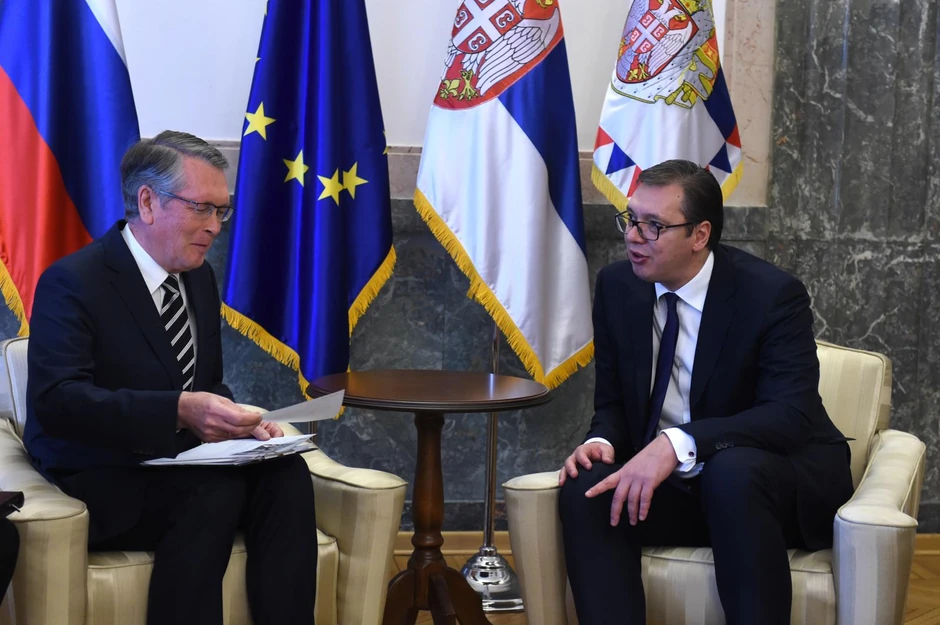 Ambasador Rusije u Srbiji Aleksandar Čepurin poklonio je predsedniku Srbije Aleksandru Vučiću neobičan poklon - plišanog psa.