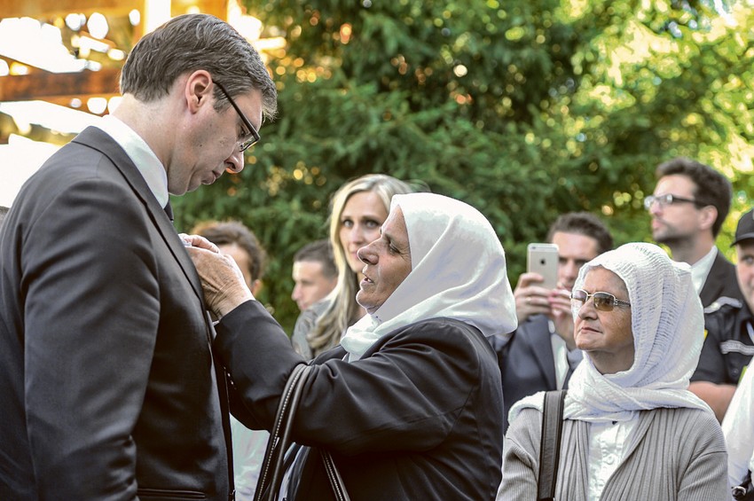 Predsedniku Srbije Aleksandru Vučiću stavila na rever srebrenički cvet i dočekala ga u Potočarima toplo i dostojanstveno, dok su ga drugi bezumni gađali kamenicama i pretili smrću dok je on pokušavao da se pokloni senima ubijenih.