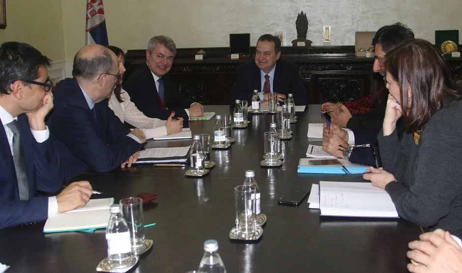 Prvi potpredsednik Vlade i ministar spoljnih poslova Republike Srbije Ivica Dačić primio je danas u kurtoaznu posetu ambasadora Italije u Beogradu, Karla Lo Kaša i italijansku delegaciju Ministarstva spoljnih poslova i međunarodne saradnje, koja boravi u Srbiji povodom bilateralnih političkih konsultacija dva ministarstva.