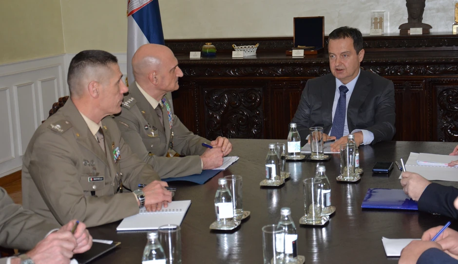 Prvi potpredsednik Vlade i ministar spoljnih poslova Ivica Dačić primio je danas načelnika štaba NATO Komande združenih snaga u Napulju i šefa Komandnog elementa EU general-potpukovnika Lućana Portolana, a sagovornici su izrazili obostrano zadovoljstvo intenzivnim političkim dijalogom Srbije i NATO-a na najvišem nivou.