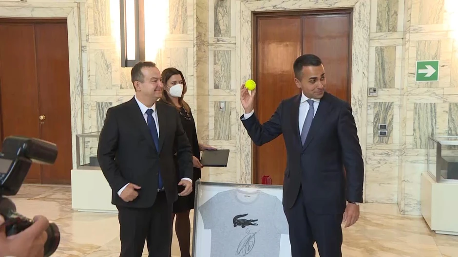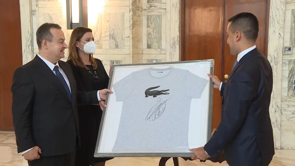 Šef srpske diplomatije poklonio je italijanskom kolegi majicu i tenisku lopticu sa potpisom srpskog tenisera Novaka Đokovića, naglasivši da je to specijalno za njega. Di Majo je zahvalio Dačiću i naglasio da je to poseban i jedinstven poklon.