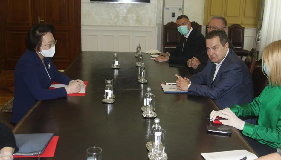 Dačić je tokom sastanka zahvalio Kini na pomoći u medicinskoj opremi i materijalu, na pućivanju tima medicinskih stručnjaka, donaciji dve laboratorije "Vatreno oko za testiranje na COVID-19, kao i na pomoći kineskih provincija i kompanija, a posebno na pojedinačnim donacijama ogromnog broja kineskih građana upućenih Srbiji.