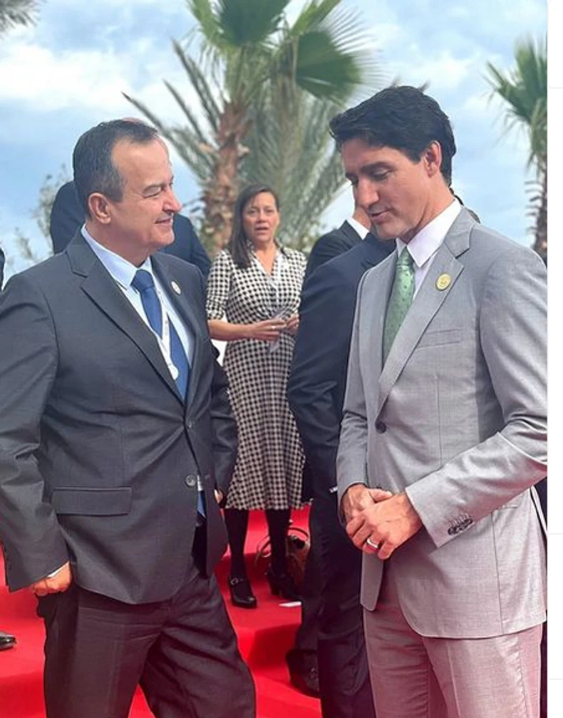 - Na marginama 18. Samita Frankofonije u Đerbi susreo sam se premijerom Kanade Džastinom Trudoom i u kraćem prijateljskom razgovoru razmenio mišljenje o aktuelnostima u našim bilateranim odnosima i mogućnostima unapređenja tradicionalno dobre saradnje. Bilo je vremena i da se na kratko razmotri dalje unapređenje odnosa Srbije i Kanade - napisao je Dačić.