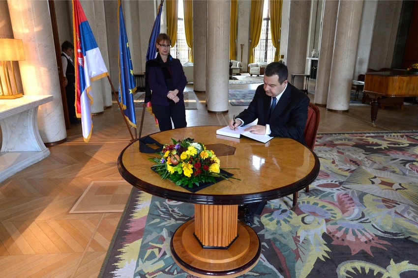 Prvi potpredsednik Vlade Srbije i ministar spoljnih poslova Ivica Dačić upisao se danas u Knjigu žalosti u Ambasadi Francuske u Beogradu, otvorenu povodom terorističkih napada na Pariz.