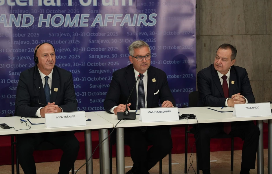 - U Sarajevu se ovih dana održava tradicionalni susret Evropske unije i partnera sa Zapadnog Balkana u oblasti unutrašnjih poslova i pravde. Danas je bio sastanak ministara unutrašnjih poslova. Ja sam iskoristio ovu priliku da pre sastanaka bilateralno obavim razgovor sa komesarom za unutrašnje poslove Brunerom, koji je zamenio prethodnu komesarku sa kojom smo imali izvanredne odnose i to je bio naš prvi susret. Veoma je bitno reći da, po njegovim rečima, ima pozitivno mišljenje o našoj saradnji i ja sam ga pozvao u posetu.