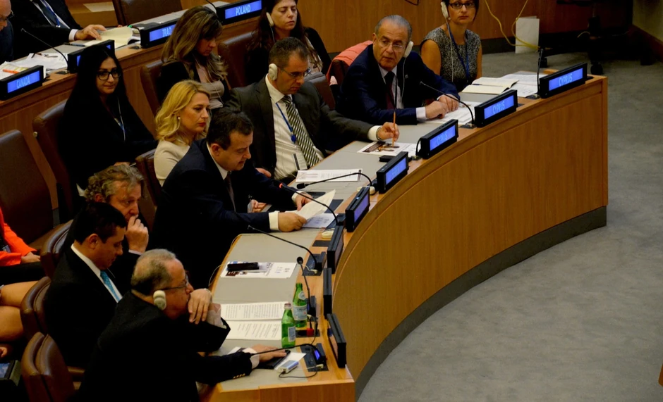 Dačić je deo delegacije Srbije, predvođene predsednikom Tomislavom Nikolićem, koja učestvuje na generalnoj debati 70. jubilarnog zasedanja Generalne skupštine UN u Njujorku i pratećim skupovima.