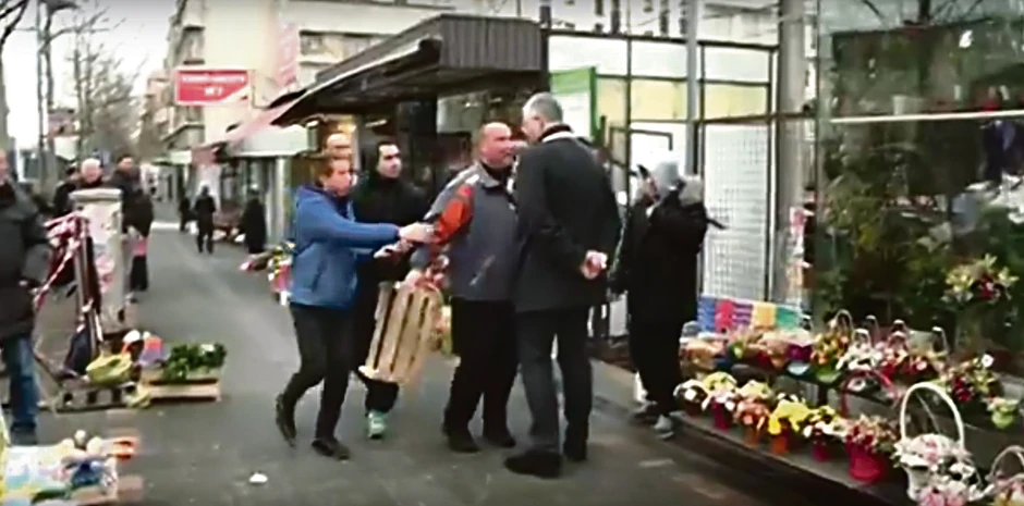 Na snimku incidenta koji se juče pojavio vidi se grupa ljudi koja dobacuje funkcionerima DS, Šutanovac koji prilazi i kaže: „Šta je? Ajde, udari me“, i napadači koji prete letvom i bacaju flašu.