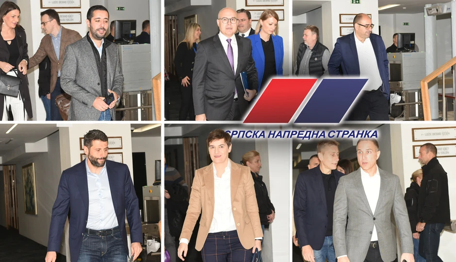 Na sednicu je prvi stigao Darko Glišić, predsednik Izvršnog odbora Srpske napredne stranke, a za njim su pristigli Darija Kisić Tepavčević, Irena Vujović, Miloš Vučević, Tomislav Momirović...