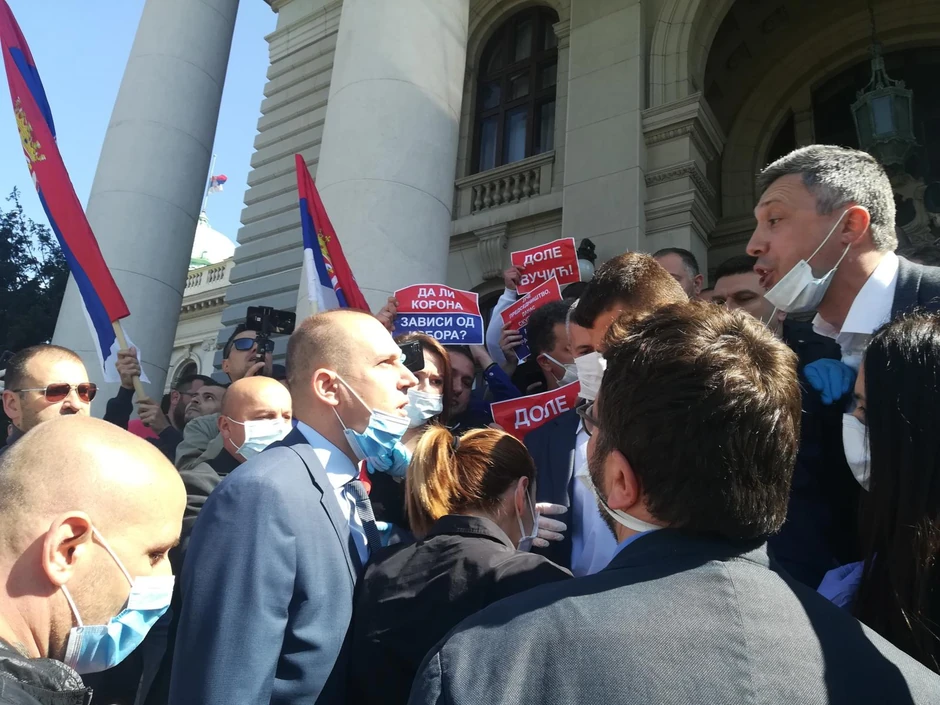 Obradović i ostali, negirali su na saslušanju izvršenje krivičnog dela, navodeći da nije bilo fizičkog obračuna niti želje za tim, već da je to bio politički protest četvoro poslanika Srpskog pokreta "Dveri".