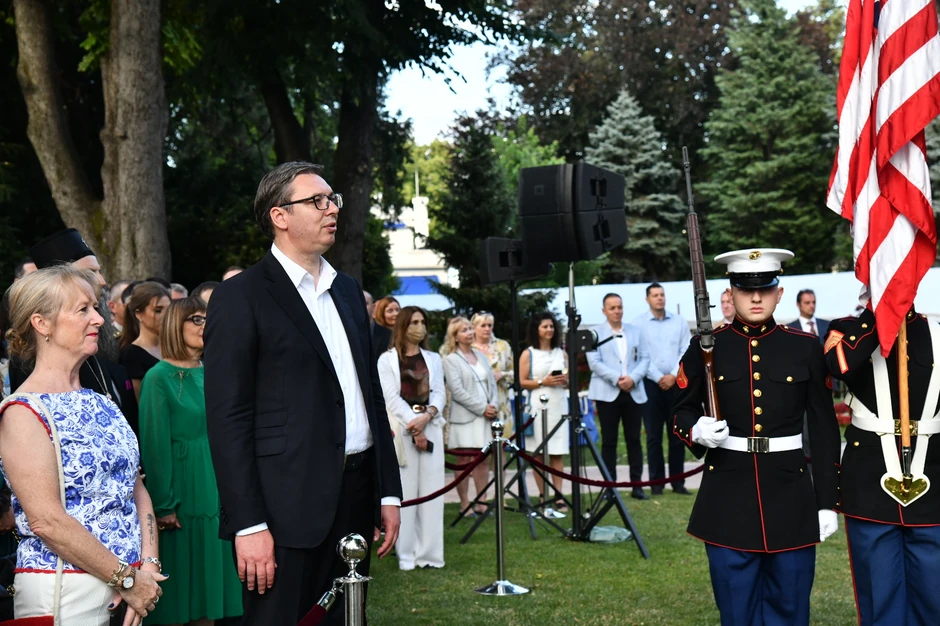 "Svakog 4. jula građani SAD slave sećanje na borbu za slobodu i samostalnost, krunisanu u Deklaraciji o nezavisnosti, usvojenoj pre 245 godina. Mi, u Srbiji, delimo univerzalne vrednosti, oličene u Deklaraciji, a to je da su 'svi ljudi stvoreni jednaki i da je njihovo neotuđivo pravo - pravo na život, slobodu i težnju ka sreći", naveo je Vučić u čestitki koju je uručio danas na prijemu u američkoj rezidenciji u Beogradu ambasadoru Entoniju Godfriju.