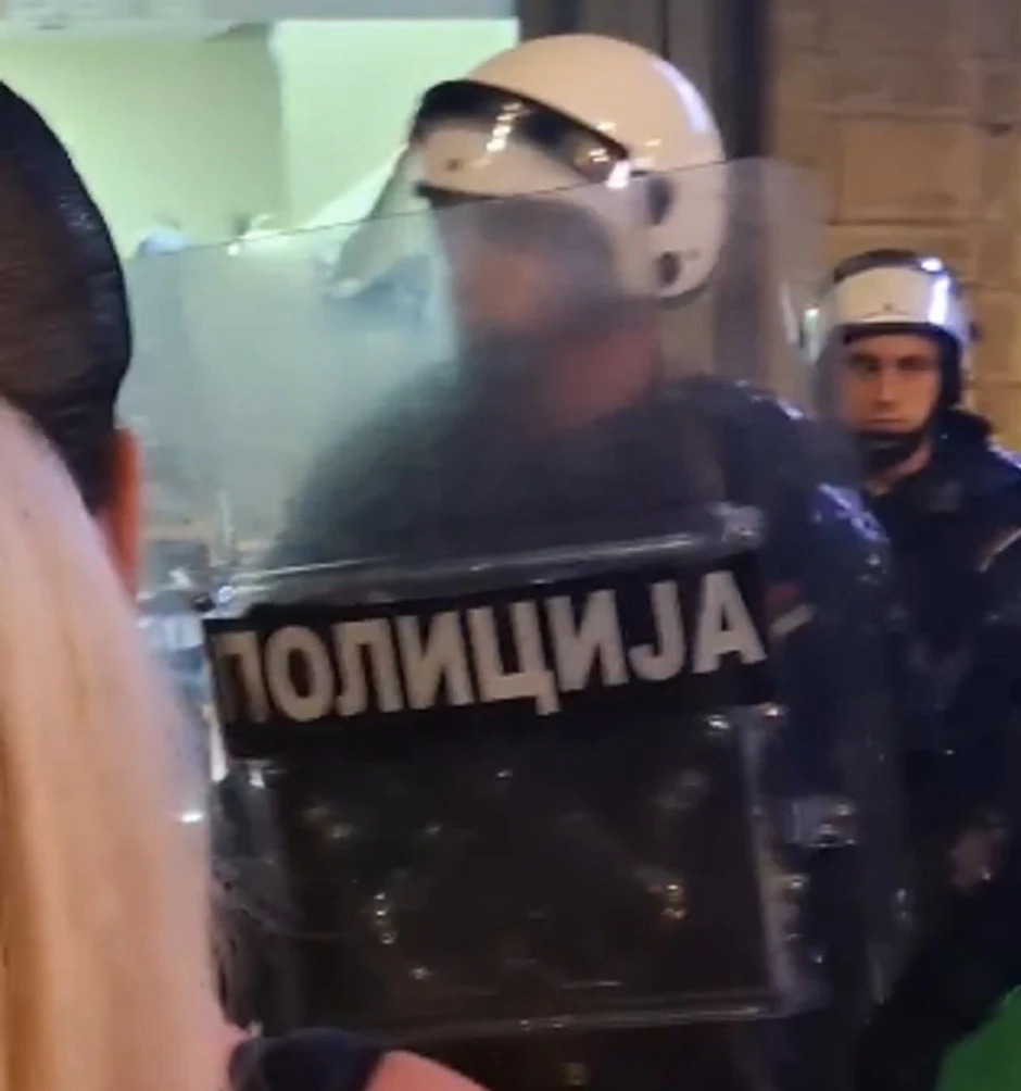Ispred prostorija nalazi se i policija u punoj opremi za razbijanje demonstracija.