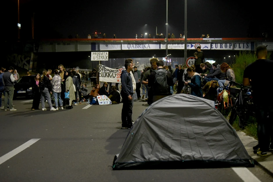 Deo učesnika trećeg po redu protesta "Srbija protiv nasilja" proveo je noć blokirajući deo međunarodnog autoputa u novobeogradskim blokovima kod "NIS" pumpe. U subotu ujutro oko šest sati blokada je okončana i saobraćaj je ponovo uspostavljen.