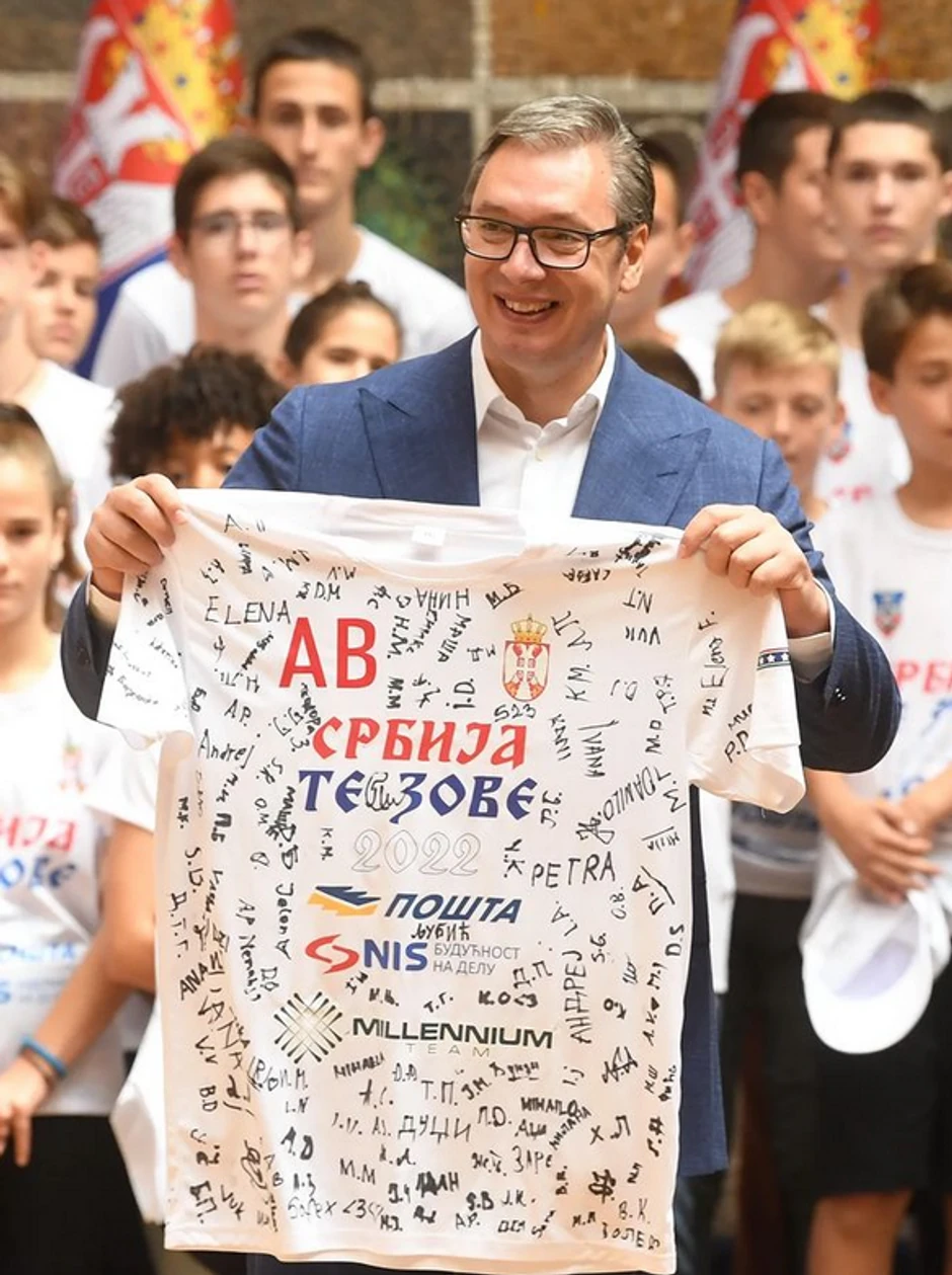 Predsednik Aleksandar Vučić ugostio je danas oko 180 mladih sportista sa Kosova i Metohije, iz Republike Srpske i dijaspore, koji učestvuju u kampu "Srbija te zove 2022".