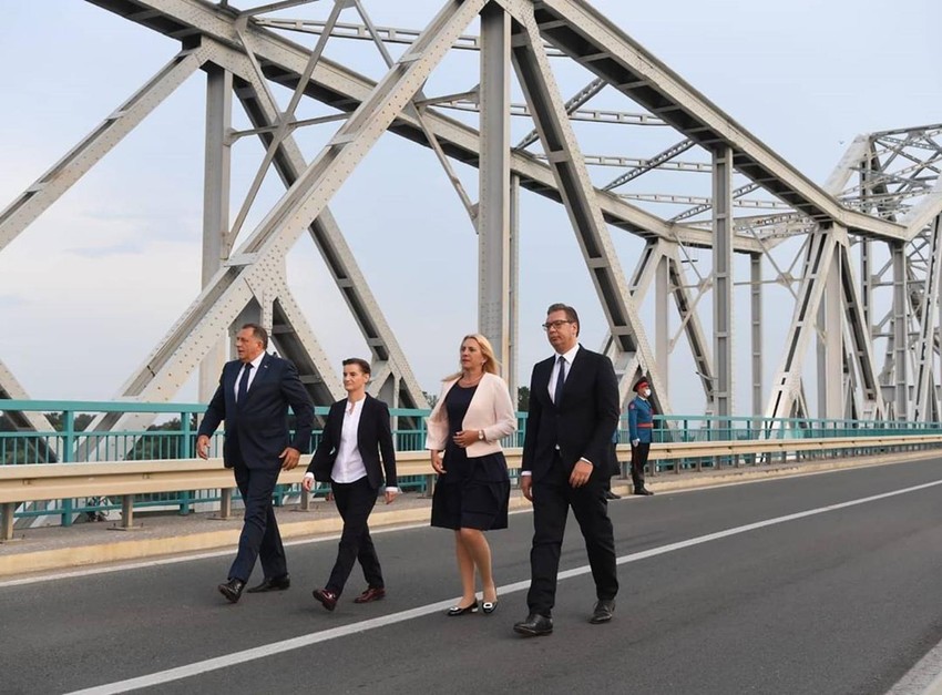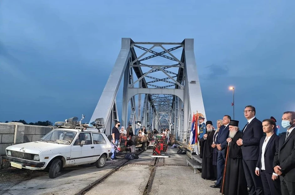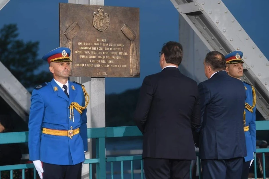 - Novi most koji spaja Srbiju i RS, Beograd, Banjluku i Sarajevo, na najbolji način govori koliko smo se promenili, naučili kako da vodimo pametniju i mudriju politiku i kako moramo da budemo snažniji da štitimo istinu, čuvamo ponos i dostojanstvo, kao što smo i trobojku umeli da štitimo - rekao je predsednik Srbije.
