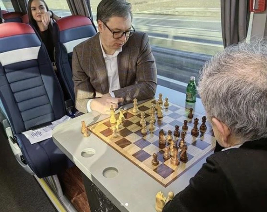 Predsednik Srbije Aleksandar Vučić objavio je danas fotografiju na Instagramu na kojoj igra partiju šaha na putu za Merošinu, gde će stranka koju predvodi SNS održati predizborni skup i krenuti u kampanju za predstojeće parlamentarne izbore, raspisane za 3. april.